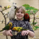 - Если попугай сел вам на голову или плечо, не паниковать – просто позовите сотрудника, и он поможет снять птицу, если это необходимо.