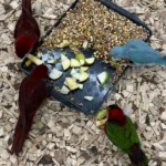 - Не кормите попугаев принесенной едой – некоторые продукты вредны для их здоровья. В зале можно приобрести специальный корм.